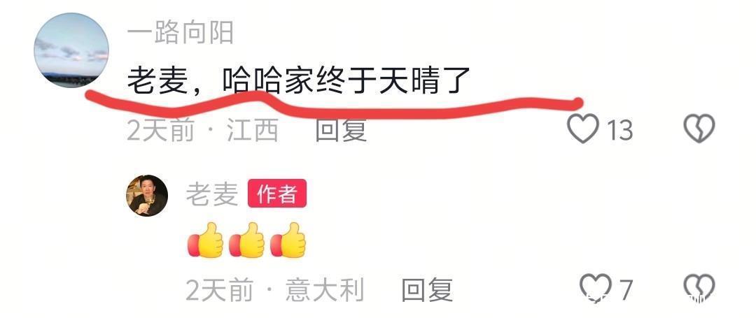 老麦也发布了库存视频,视频里有小小哈去滑雪的身影。有网友称,哈哈家族的晴天已经到了。